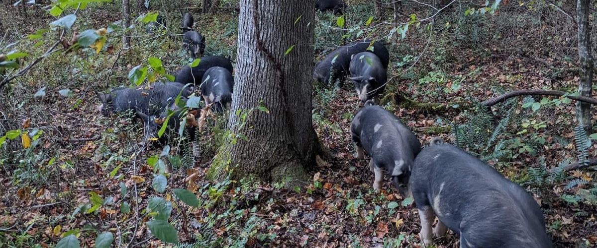 Our pigs are raised in the forests, where they are allowed to express their natural instincts and behaviors in a diverse, ever-changing environment.