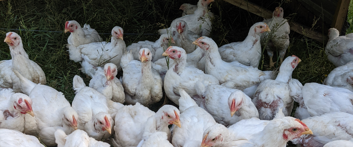 Our poultry is raised on open pasture with constant access to fresh forage, sunshine, and clean ground.